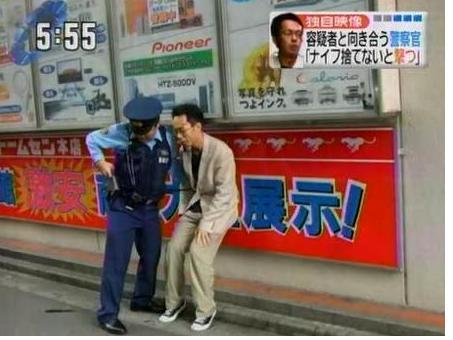 捨てた後なのか、容疑者の手にはナイフは見えない